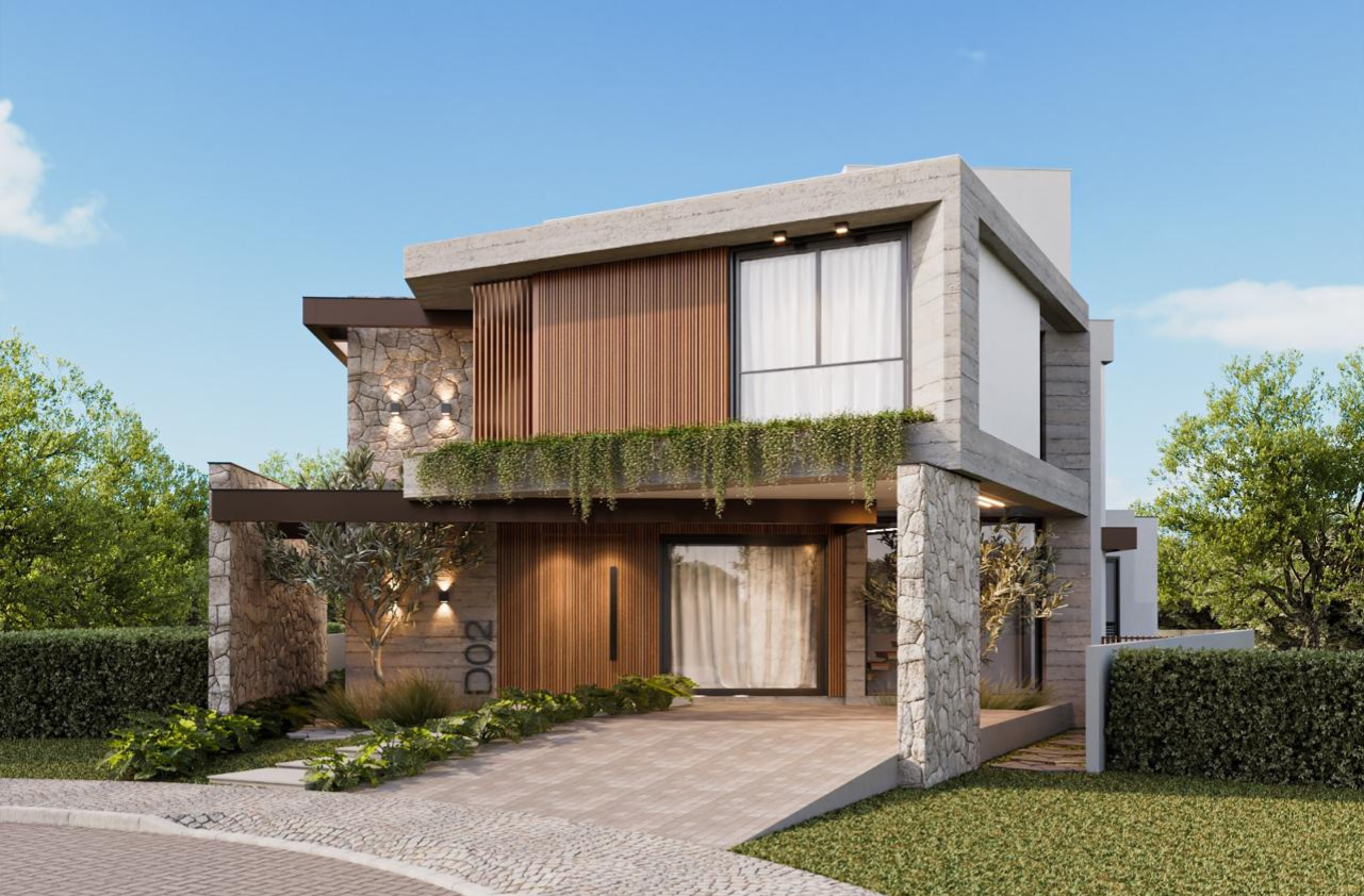 O design arquitetônico é notavelmente marcado pela combinação harmoniosa de elementos de aço corten e madeira. Essa fusão cria uma atmosfera única, onde a robustez do aço corten se entrelaça de maneira elegante com a naturalidade da madeira, conferindo ao imóvel Lúmina um caráter mais forte e orgânico. O resultado é uma estética arrojada que reflete a modernidade e a preocupação com a integração do espaço com a natureza, proporcionando uma experiência residencial única para seus habitantes.